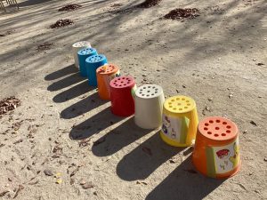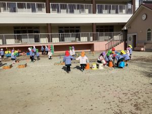 我々職員は大急ぎで園庭のあちらこちらに宝物を隠します。