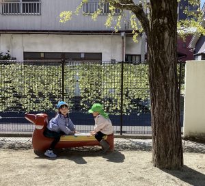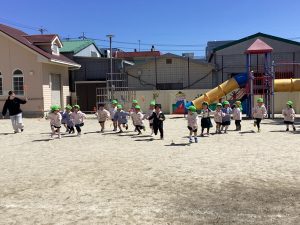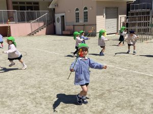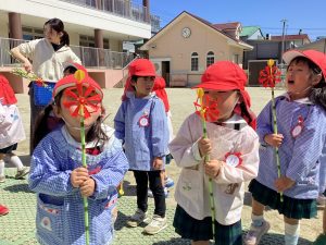 こいのぼりを飾る前に園庭に出て矢車をまわしました!