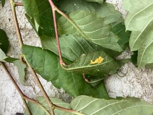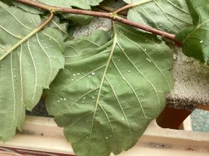 この白いつぶつぶは「アブラムシ」の卵かな?